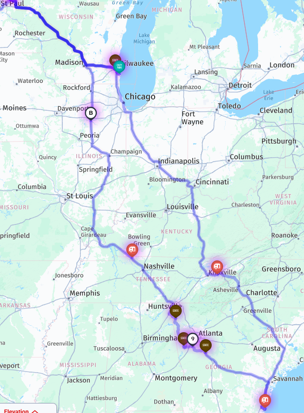Finally, we took the shortest / fastest route back to Wisconsin. On the way, we had to re-winterize the camper in Tennessee before heading into the frozen tundra of Illinois and Wisconsin.